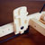 Die abgerundeten Schärleistchen aus stabilem Holz werden beim Aufwickeln der Kette auf den Kettbaum in jeder Runde eingelegt und helfen dabei, die Spannung der Fäden Runde für Runde stabil zu halten.