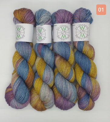 Hier ein paar Beispielbilder von meinen handgefärbten Wollqualitäten